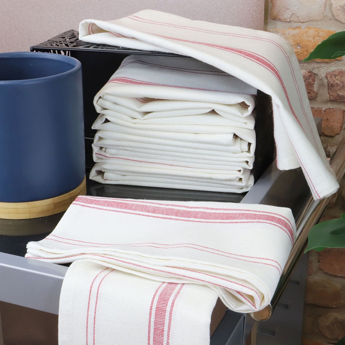 Lot de 12 torchons métis lin-coton BRASSERIE
